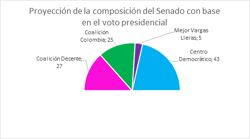 La coalición presidencial obtendría una corta mayoría en la Cámara (aunque no si añadimos las 5 curules de la FARC), pero la oposición sería mayoritaria al Senado. Los partidos tradicionales desaparecerían, a menos que el partido conservador logre convencer a Duque de integrar sus candidatos en su lista, y le tocaría a la U hacer lo propio con Vargas Lleras.
